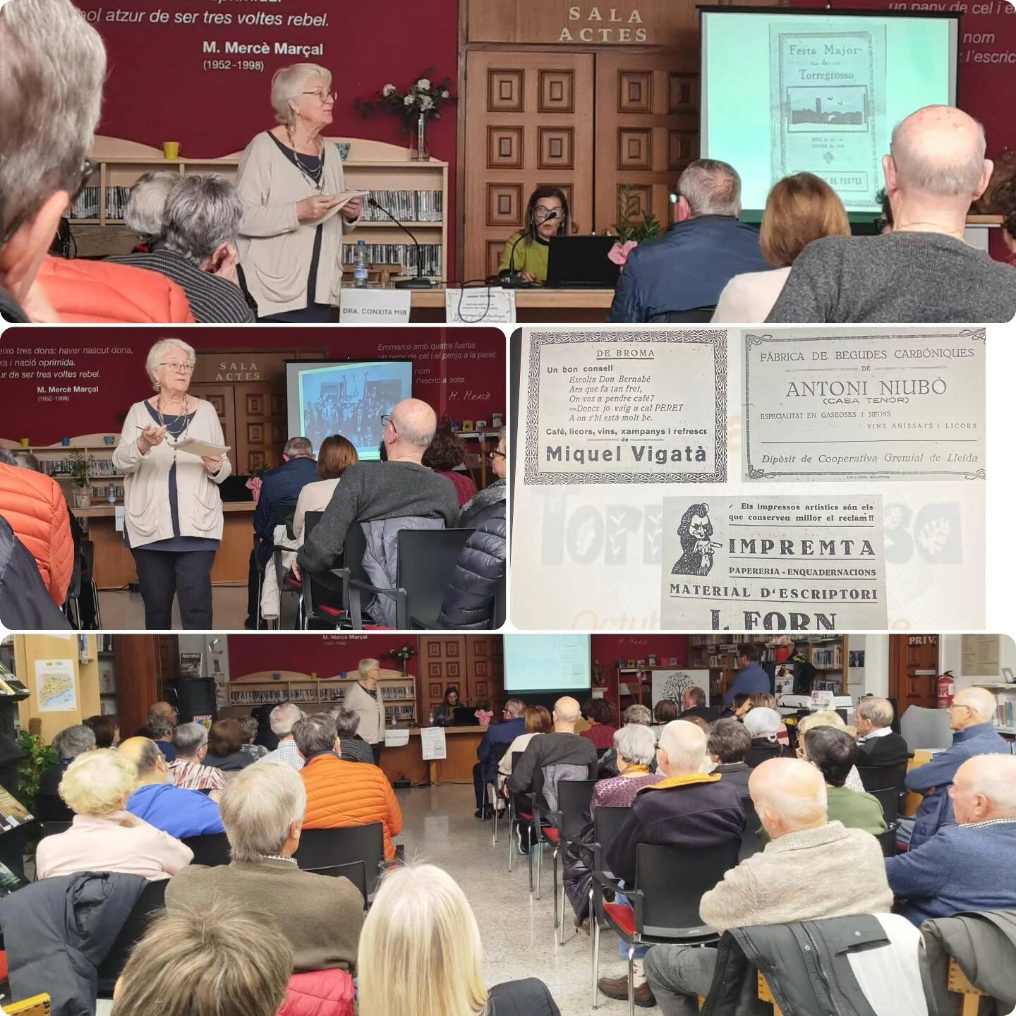 Interessant i amena conferència a la Biblioteca M. Mercè Marçal de la torregrossina Dra. Conxita Mir a partir del programa local de Festa Major de 1928; un retrat de la història social, cultural i ideològica de Torregrossa del primer terç del segle XX.