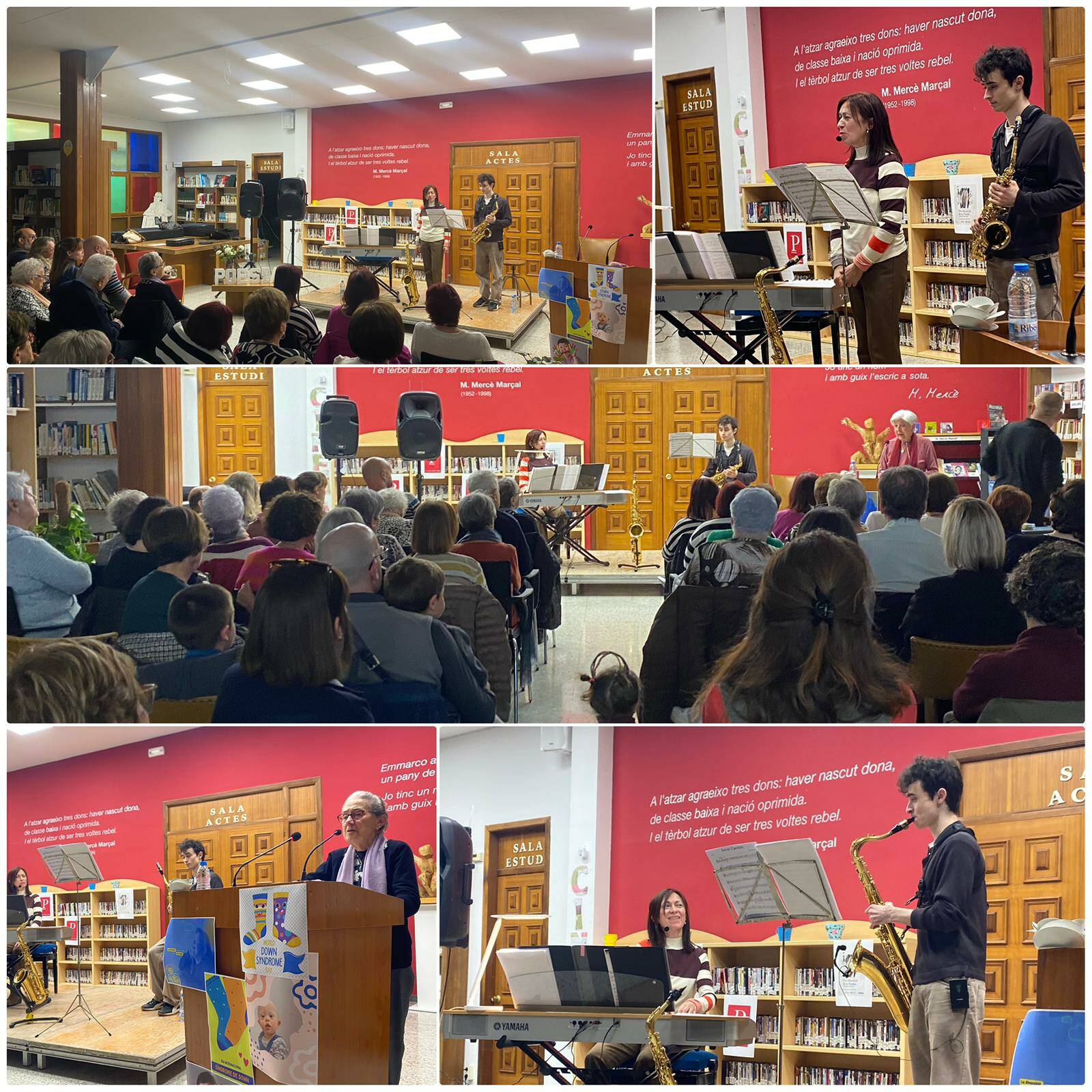 Entre versos punyents i emocionants, la melodia del piano i la veu d’Anna Blanch, i la solemnitat del saxo amb David Corbella, posen la banda sonora a una tarda plena de bellesa, inclusió i autenticitat a la Biblioteca M. Mercè Marçal.