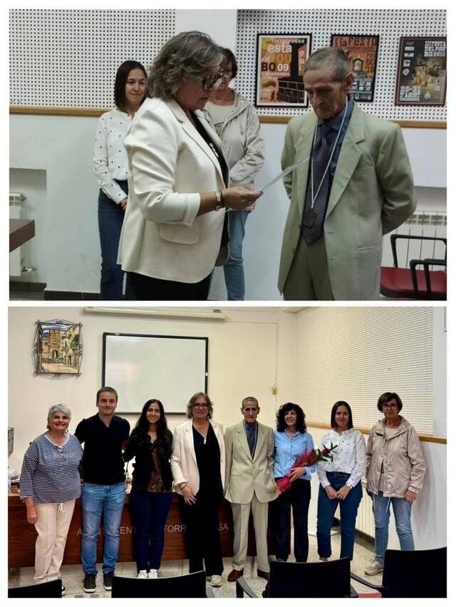 Medalla centenària de la Generalitat i placa conmemorativa de l'Ajuntament de Torregrossa al Sr. Francisco Boneu pel seu 100 aniversari